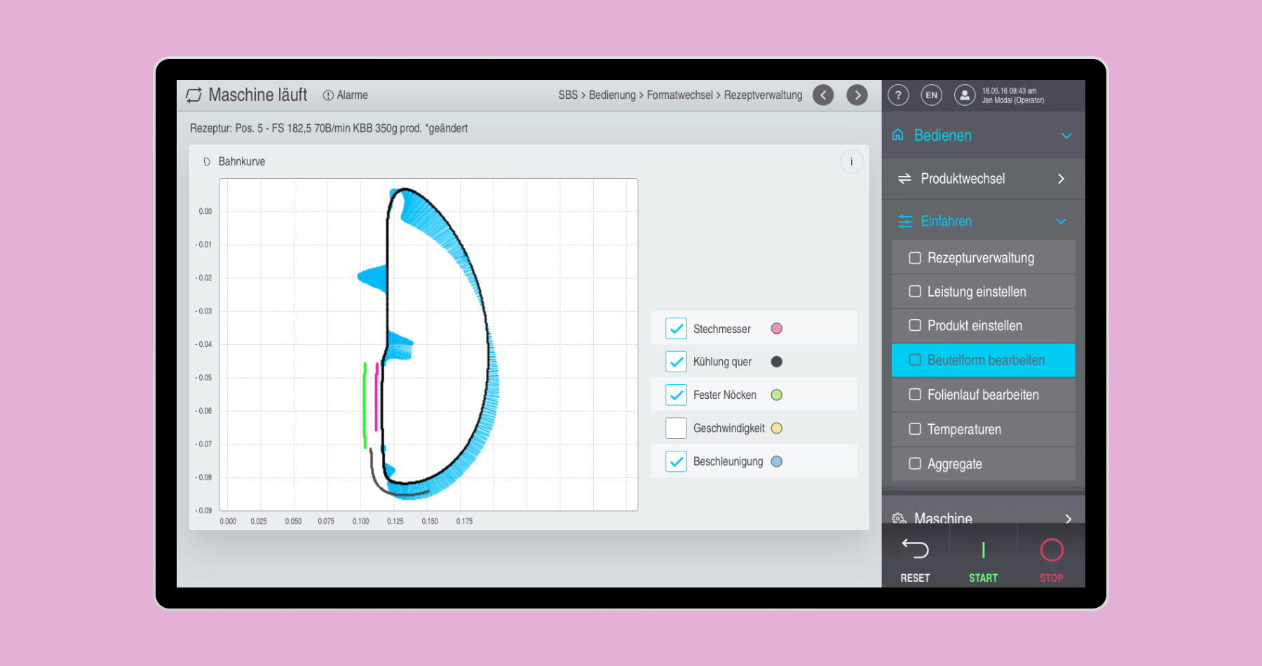Rovemas HMI ist eine touch-optimierte Benutzeroberfläche für Verpackungsmaschinen und -linien, die den gesamten Verpackungsprozess abdeckt: Von der Dosierung über Form-, Füll- und Verschließmaschinen bis hin zu kompletten Verpackungssystemen, einschließlich Endverpackung, für eine Vielzahl unterschiedlicher Produkte und Anwendungen im Food- und Non-Food-Bereich. Die Benutzeroberfläche verfügt über ein vollständig anpassbares HMI, das sich an verschiedene Bildschirmgrößen und Eingabemethoden anpasst.